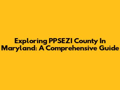 Exploring PPSEZI County In Maryland: A Comprehensive Guide